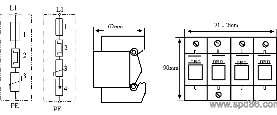1動態(tài)斷路器 2熱感斷路器3 金屬氧化物壓敏電阻4 氣體放電管