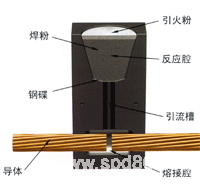 放熱焊接接是一種簡(jiǎn)單、高效率、高質(zhì)量的金屬連接方法。它通過(guò)鋁與氧化銅等的化學(xué)(放熱)反應(yīng),產(chǎn)生高溫銅液,適用于紫銅、黃銅、青銅、鋼、不銹鋼、熟鐵等金屬材料的熔接。 放熱焊接模具左右開(kāi)口式兩片模 |